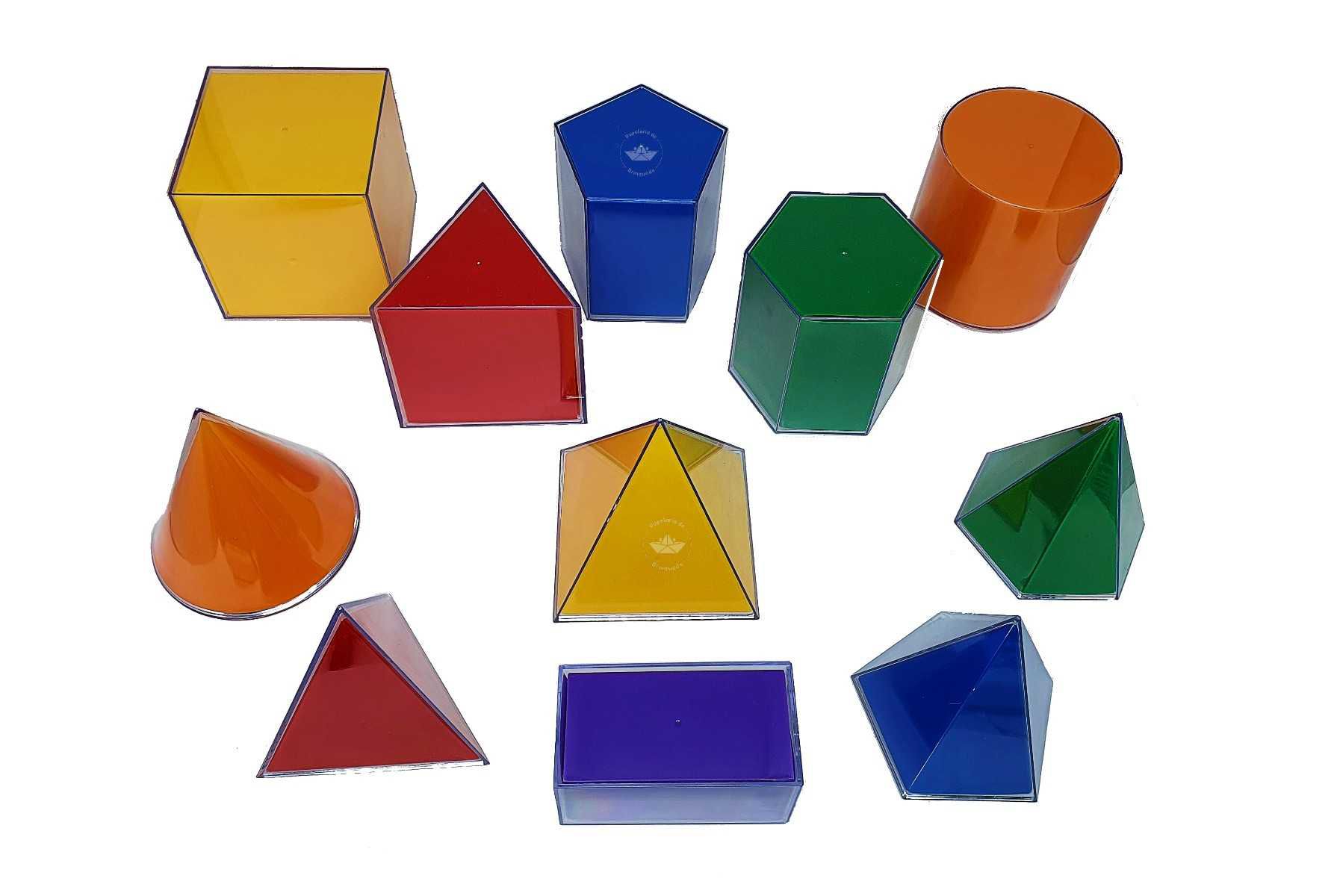 Estes sólidos geométricos são utilizados para exploração das suas formas e no reconhecimento de seus elementos através da visualização. Estes sólidos são indicados para dedução de fórmulas e cálculo de áreas e volumes.